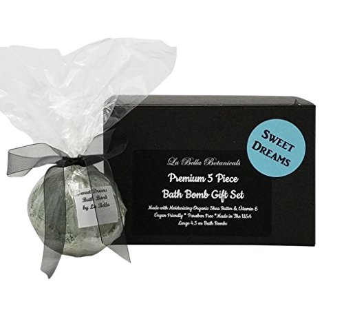 -. Feature : SWEET DREAMS - Rose Oil blended with Sweet Pear, Tropical Fruit and a hint of Banana - 1/2 white and 1/2 greeen / INDIVIDUALLY WRAPPED - Large, 4.8 - 5 Ounce Bath Bombs in Black Gift Box - Clear Moisture Resistant Wrapping with Ribbon Tie / KID FRIENDLY - Turns Water into A Bubble Bath - All Natural Ingredients - Cruelty Free - Paraben Free - Preservative Free - Made in USA / NATURAL INGREDIENTS: Organic Shea Butter, Vitamin E, Rich Sunflower Oil, Fragrance and Essential Oils, Preservative Free, Paraben Free / NO STAINING and IT FLOATS: Fill the Tub with Rich Moisturizing Lather As Our Bath Bombs Swirl & Twirl On The Waters Surface