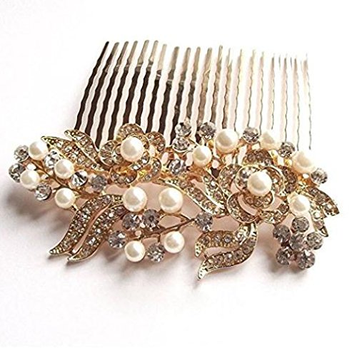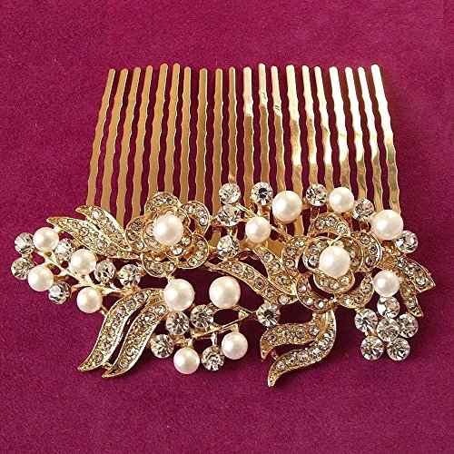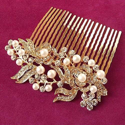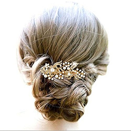 FXmimior Bridal Women Vintage Wedding Party Crystal Rhinestone Vintage Hair Comb Hair Accessories (gold)