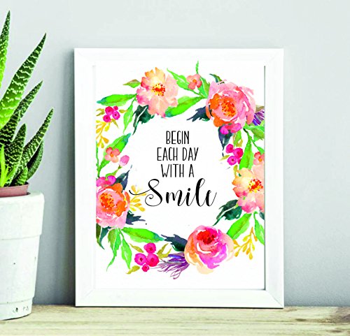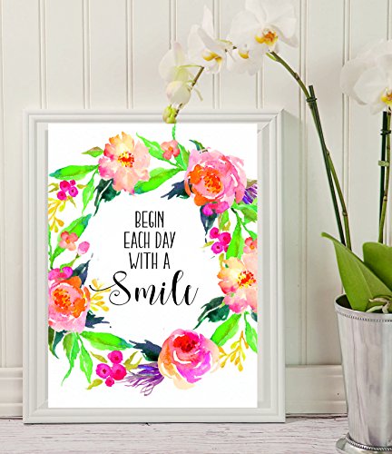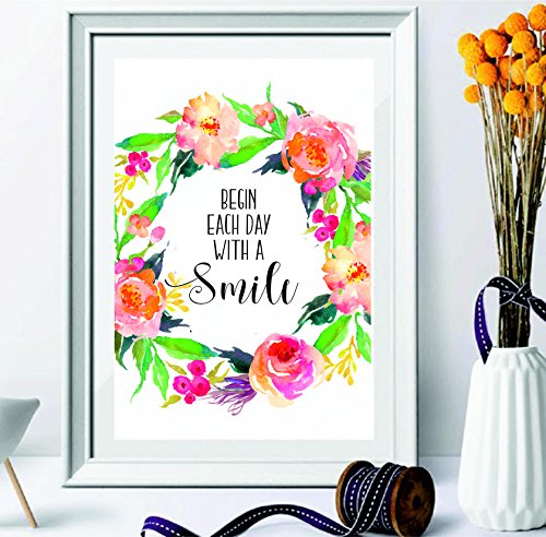 Begin Each Day With A Smile Wall Decal - Bedroom Decals - Bathroom Decals - Bathroom Decor - Wall Decal - Wall Decor - Decals-all decorations - Home Decor - wall art Watercolor Floral - #WP-01