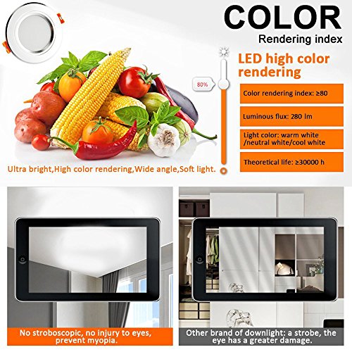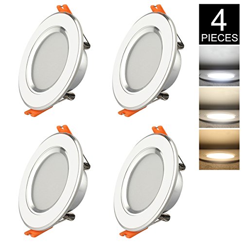GALYGG LED Downlight Ceiling Panel Lights,4W(40W Equivalent),Recessed Lighting Fixture,can Switch of 3 Colors-Cool White,Neutral White,Warm White Light,Retrofit Downlights,3 Inch White edge,4 Pack