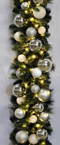 Queens of Christmas WL-GARSQ-09-ICE-LWW Pre-Lit LED Incandescent Sequoia Christmas Garland Decorated with The Ice Ornament Collection, 9', Warm White
