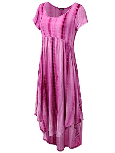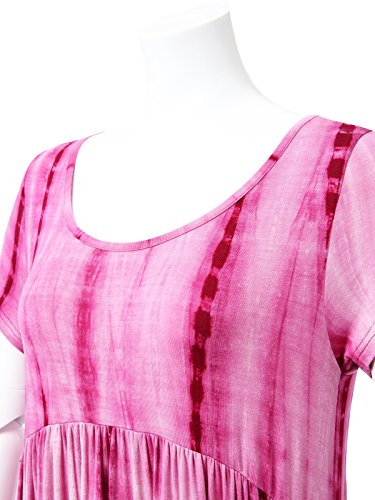JayJay Women Boho High Low Casual Maxi U-Neck Short Sleeve Tie Dye Print Long Dress With Pocket,RED,L