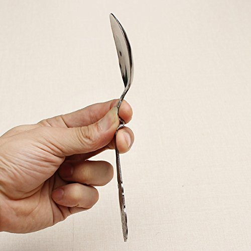 Description: Item name:Magic Bending Spoon Brand:Kingmagic Material: Metal Feature: 1.Easy to learn,suitable for beginners or professionals 2.The magician show a spoon to the audience to be checked out no problem , then grap the spoon in hands and then rub the spoon slowly , and told the audience the friction will produce heat, this time the spoon is becoming bent . 3. Then magician without touching spoon,complete with thinking to bend a spoon until the spoon bent 70 by degrees . all this happened in full view of the audience absolutely convinced. 4.you can ues your imagination,and make your own creative ways of perfomance. Package Included: 2x Magic Bending Spoon 1x Detailed Instruction 0