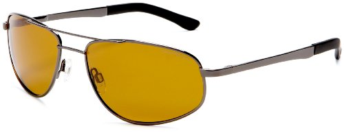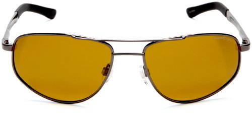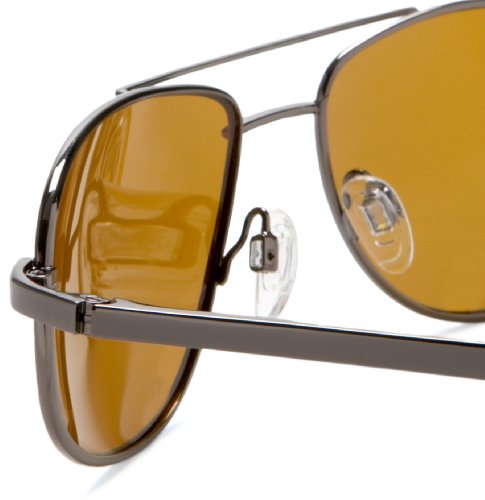 INNOVATIVE DESIGN: Aviator glasses with gunmetal stainless-rimmed frames with brow bar and gold brown polycarbonate TriLenium lenses. Adjustable nose pads and soft temple tips for great comfort