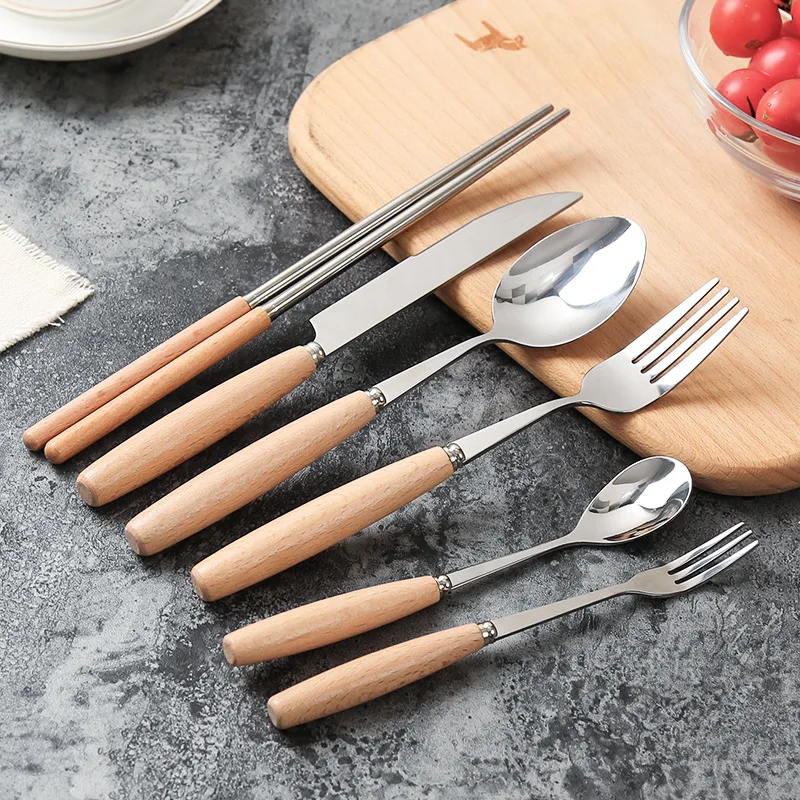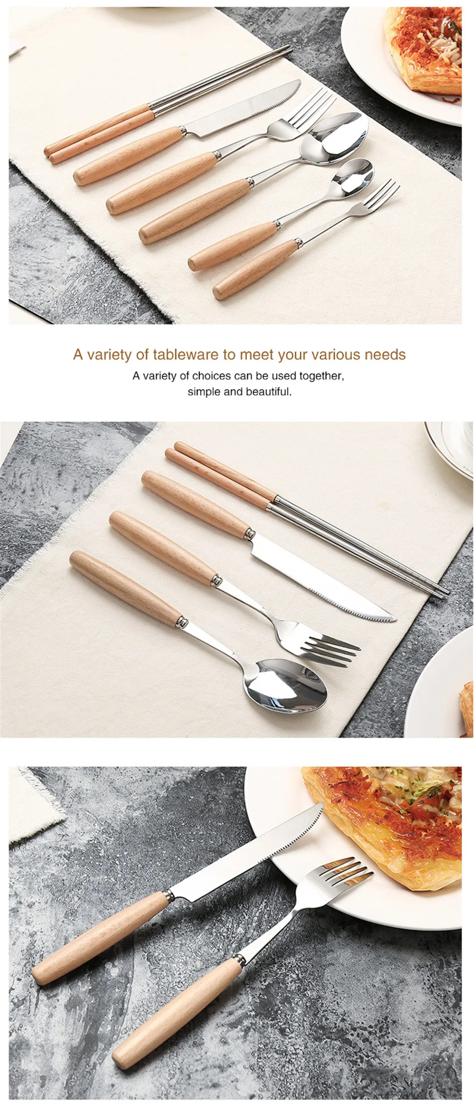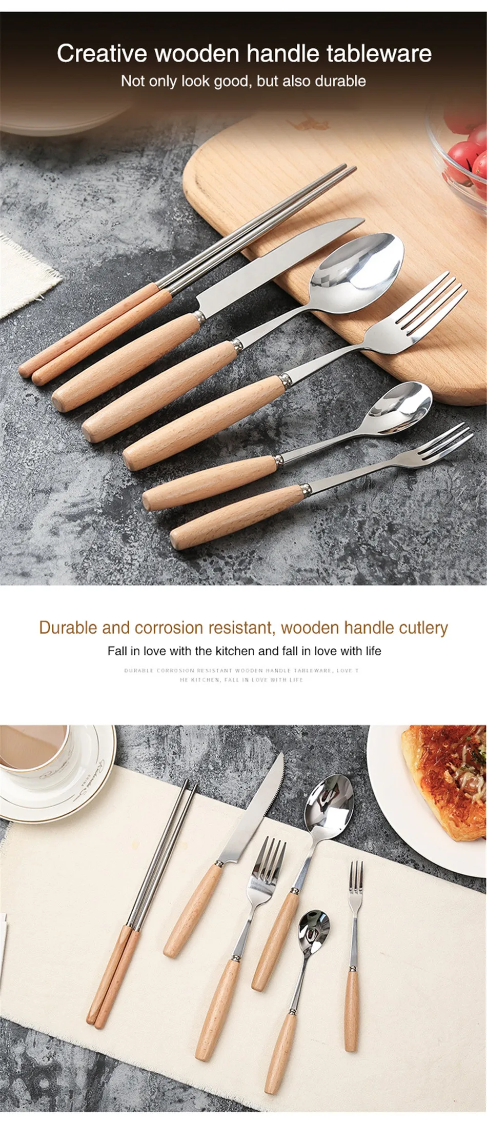 Features 1:1PC Creative Wooden Handle Tableware
