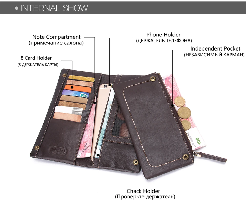 Interior:Photo Holder,Interior Zipper Pocket,Cell Phone Pocket,Zipper Poucht,Coin Pocket,Interior Compartment,Interior Slot Pocket,Note Compartment,Card Holder