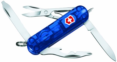 - 10 tools include: blade, scissors, bottle opener, magnetic Phillips screwdriver, retractable ball point pen