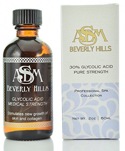 -. Feature : Why spend hundreds of dollars on facials & procedures if you can perform them safely at home? / Glycolic peels are safe exfoliating peels that can be used to remove acne scars, reduce the appearance of wrinkles & fine lines, reduce the appearance of large pores, and sooo much more! / Glycolic acid is a naturally occurring AHA acid derived from cane sugar. / 99% of the AHAs used in the beauty industry are synthetically produced, but here at ASDM Beverly Hills, our glycolic acid is naturally sourced from cane sugar. / e always recommend that first time users begin at 10% and slowly increase every month or so until desired results are achieved. If your skin is oily, combination, non sensitive, or is accustomed to peels, then you can start at 25% but we always recommend proceeding with caution. Always perform a patch test on skin to ensure that acid is not too strong for you. Please keep in mind that not all chemical peels are the same. Some can be buffered to reduce their strength.
