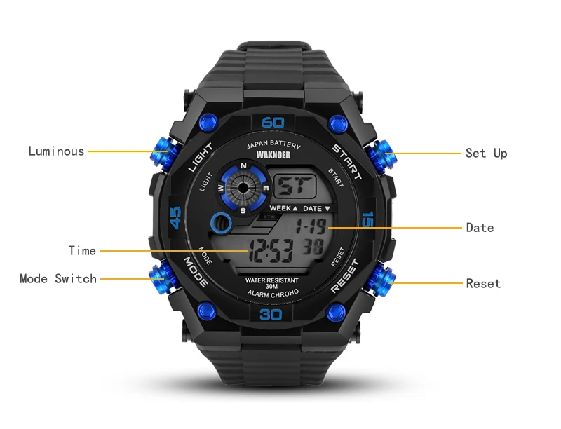 Feature:Water Resistant,LED display,Back Light,Complete Calendar,Diver,Swim