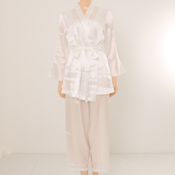 겉가운이 함께 구성된 3pcs 파자마 입니다.