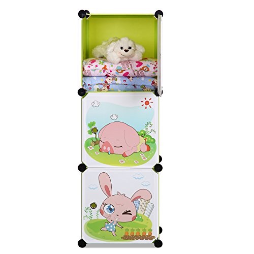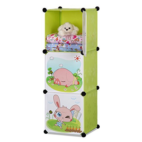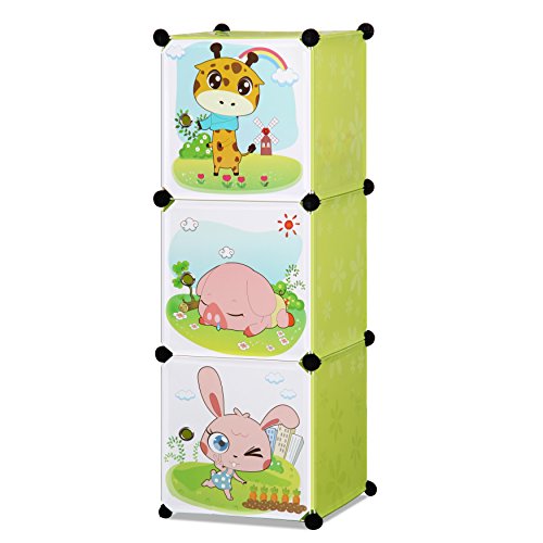 ALEKO SCAB02GR Whimsical Children's 3 Level Collapsible Multipurpose Animal Themed Storage Organizer Cubes in Green