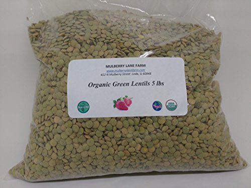 Lentils, Green, 5 lbs, (five pounds), USDA Certified Organic, Non-GMO, BULK.