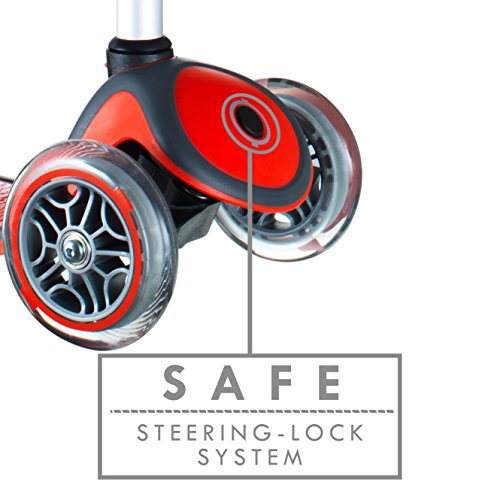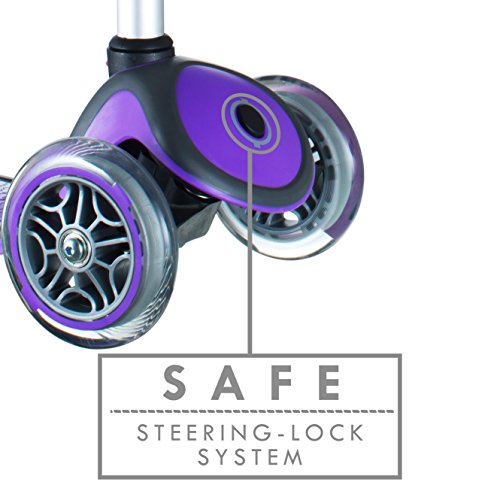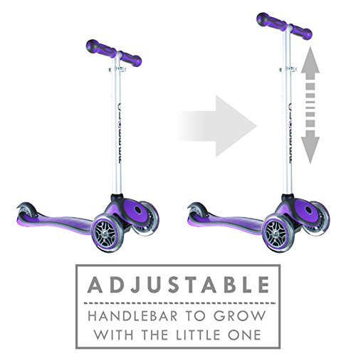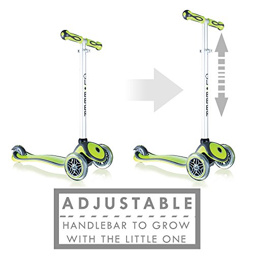 -. Brand : Globber -. Feature : Weight rated for up to 110 lbs; Recommended for ages 3 and older / Adjustable height handlebars which grow with your child / Steel plate reinforced deck for maximum support; Long rear brake covers the entire rear wheel for more efficient braking / Secure Direction Button Lock that makes it easy to learn by locking the steering to increase balance / Low deck clearance from the ground to maximize stability; Super high rebound clear PU wheels with ABEC 5 bearings -. IsAdultProduct : 0 -. IsAutographed : 0 -. IsMemorabilia : 0 -. Label : Globber -. Manufacturer : Globber -. MPN : MYFREE -. NumberOfItems : 1 -. PartNumber : MYFREE -. ProductGroup : Sports -. ProductTypeName : OUTDOOR_RECREATION_PRODUCT -. Publisher : Globber -. Studio : Globber -. Title : Globber 3 Wheel Adjustable Height Scooter