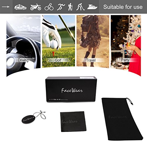 UV400 PROTECTION - FaceWear lenses can block 100% of both UVA and UVB radiation. UV400 rated sunglasses is essential to protect your eyes against long term UV damage and keeping your eyes healthy when going outdoor.