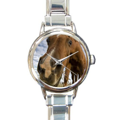 -. Title : Personalized Watch Hello Funny horse Round Italian Charm stainless steel Watch