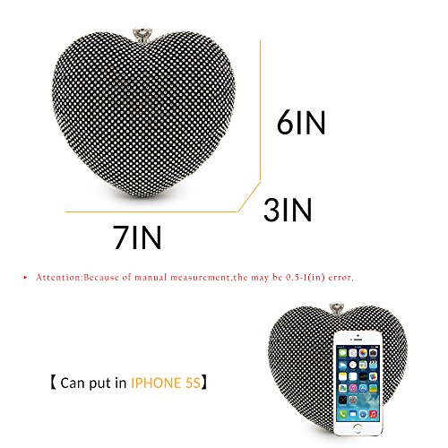 -. Feature : Feature: Full mini rhinestones, mini heart shape / Occasion: Suitable for Party, Banquet, Prom, daily / Dimension: 7.08" x 6.3" x 3.14"( L x H x W ), it can fits in iPhone 5s or other small items which you need. / Multi-Way: The fixed handle strap and removable chain strap for you choose to clutched in hand or hung on the shoulder. / Material: The entire structure is made of superior hardware frame construction, the lining is made from PU, which feels soft when you take it.