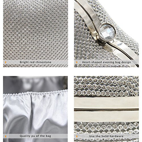 -. Title : Milisente Women Rhinestone Evening Bag Fashion Heart Shape Clutch Purse