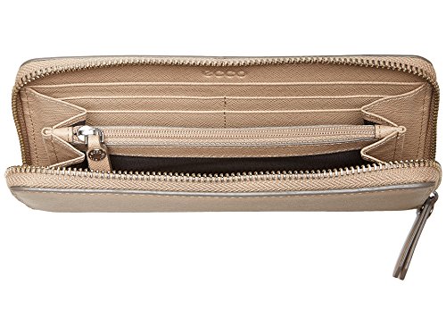 Studio : ECCO Publisher : ECCO Binding : Apparel Product Description Keep all of your billfolds, care, coins and receipts stylishly organized with the iola large zip wallet. The beautiful shiny zip hardware gives added security while looking great. This soft embossed leather wallet features a zip compartment, slash pockets, billfold compartments and eight credit card slots. 0