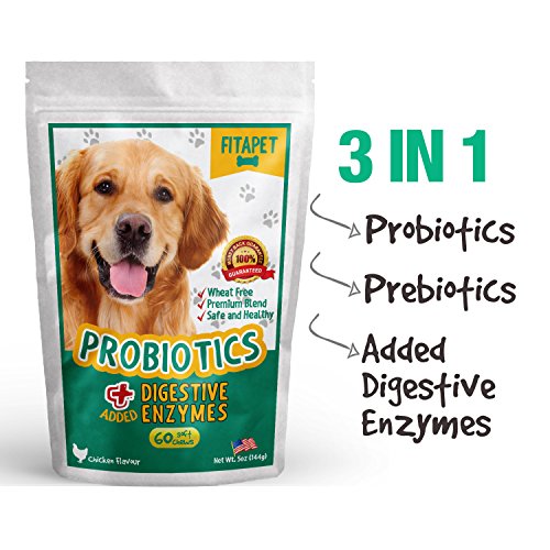 -. Title : Probiotics for Dogs Plus Added Digestive Enzymes Boosts Digestive Health and Aids Diarrhea Relief, Bad Breath and Yeast Problems 60 Dog Treats