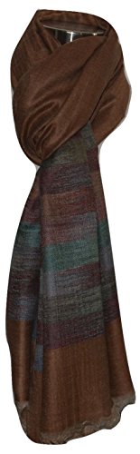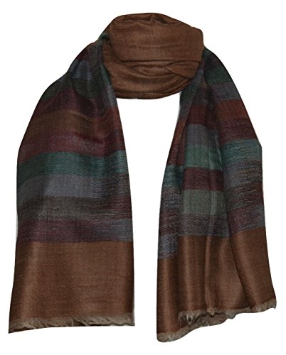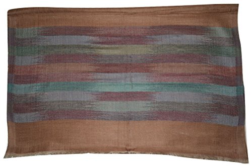 Binding : Apparel Product Description ITEM DESCRIPTION Handcrafted by artisans from Kashmir with Premium Quality Pure Pashmina Wool Silk fabric. This Scarf/Shawl is luxurious, super soft, warm, in beautiful multicolor Ikat Weave Stripes in silk fabric which gives it a little shine. Very light weight and apt for any occasion. Never out of fashion. Dimensions: 80 Inches * 29 inches (Approximate) Maintenance: Dry Clean only. 0