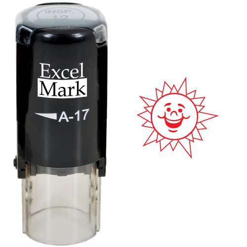 Round Teacher Stamp - HAPPY SUN - RED INK