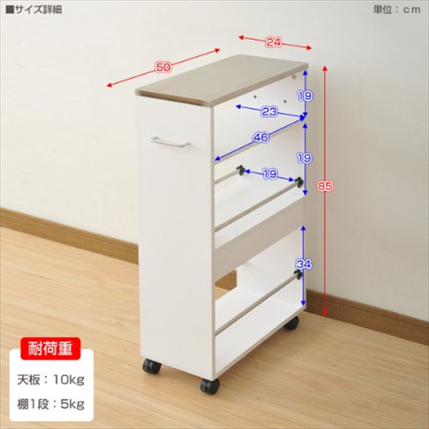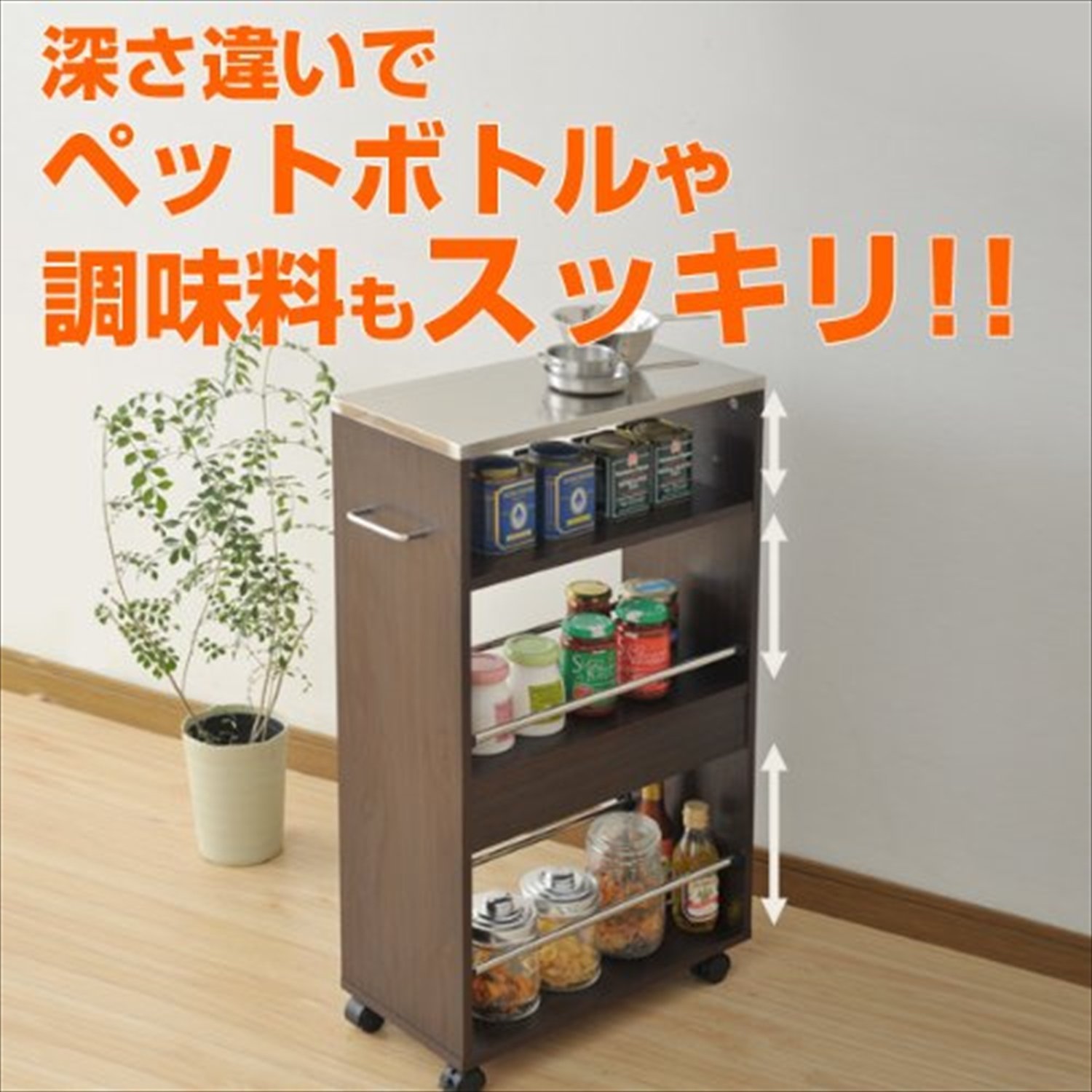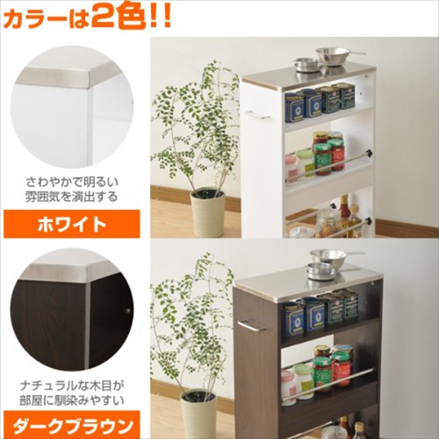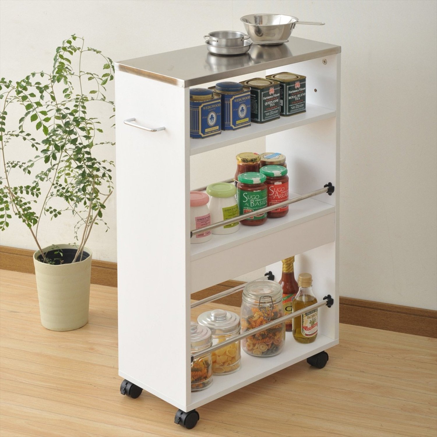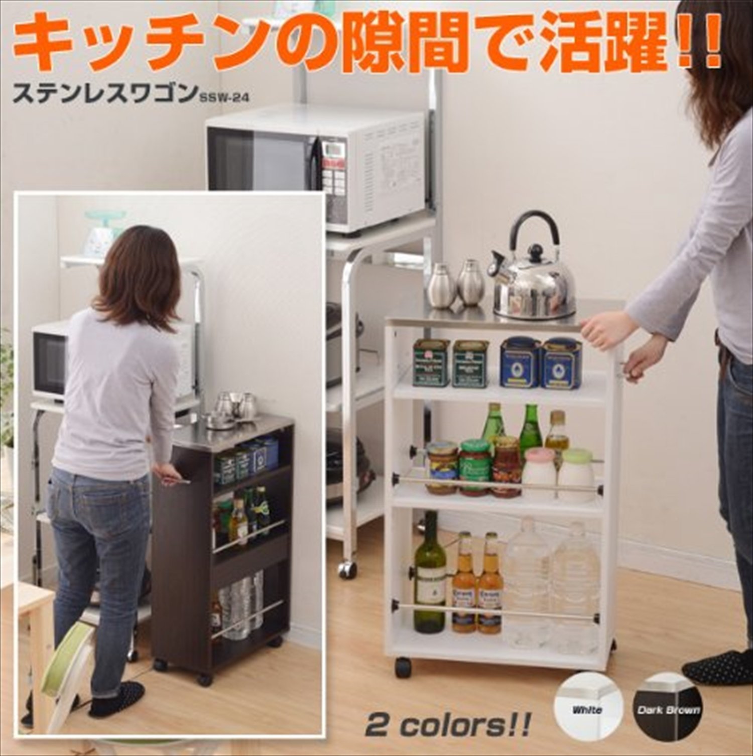 ● Assembly time ● Assembly time: About 20-30 minutes ● Storage wagon that can put hot items on the top plate of stainless steel ● Effective utilization of the gap even in a narrow kitchen with a slim width of 24 cm ● Spill prevents the fall of objects in the middle and lower row