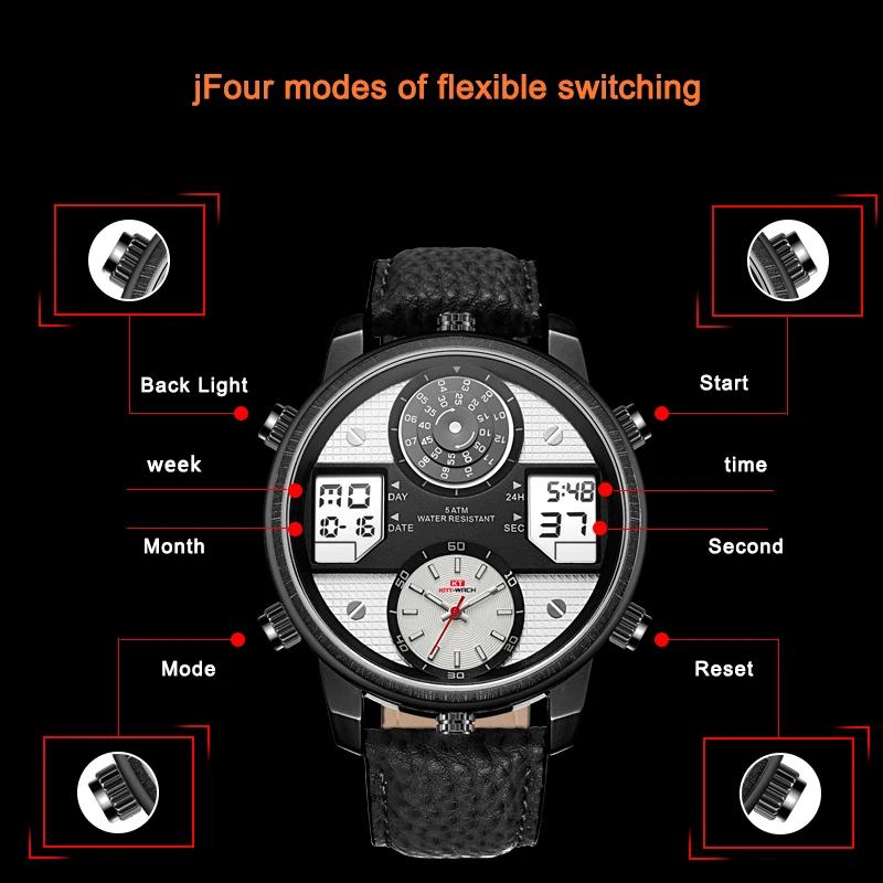 Feature:Water Resistant,LED display,Multiple Time Zone,Stop Watch,Complete Calendar,Back Light,Week Display,Alarm,Chronograph