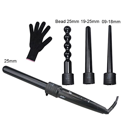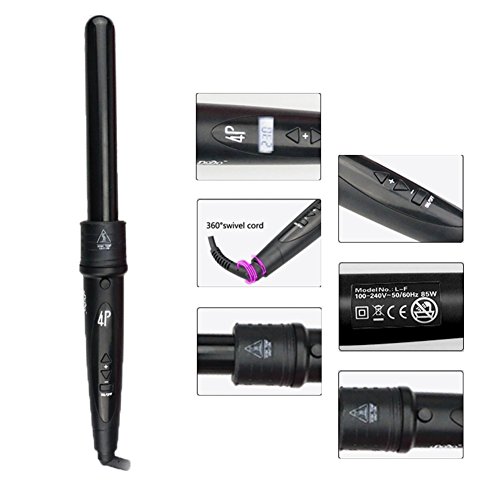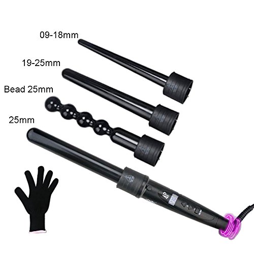 ibulors Adjustable LCD Display 4 in 1 Hair Curler Wand Set with Interchangeable Barrels Hair Curling Irons