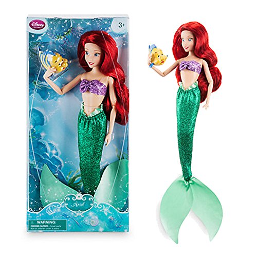 Our Ariel classic doll is ready for under-the-sea fun with Flounder! The Little Mermaid's tail is made from a sparkling green fabric with fins, and her trademark shell top has also been given a glittery finish! Character doll Ariel from The Little Mermaid Posable arms, legs and head Long, realistic hair Glitter fabric mermaid tail with fins Glitter bandeau style shell top Complete the fairy-tale with our Prince Eric Classic Doll Other dolls sold separately and subject to availability H30cm approx Ages 3 Years+Feature