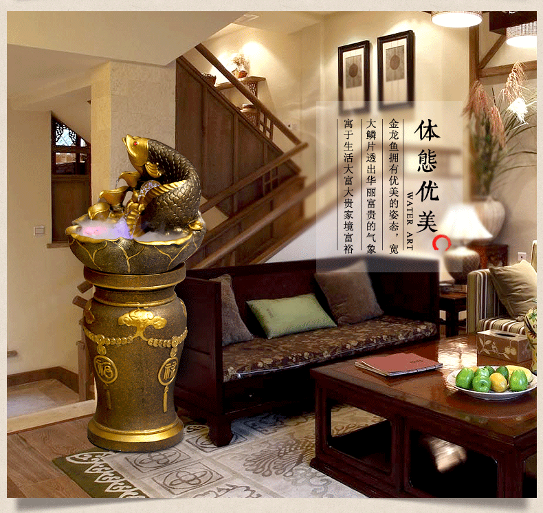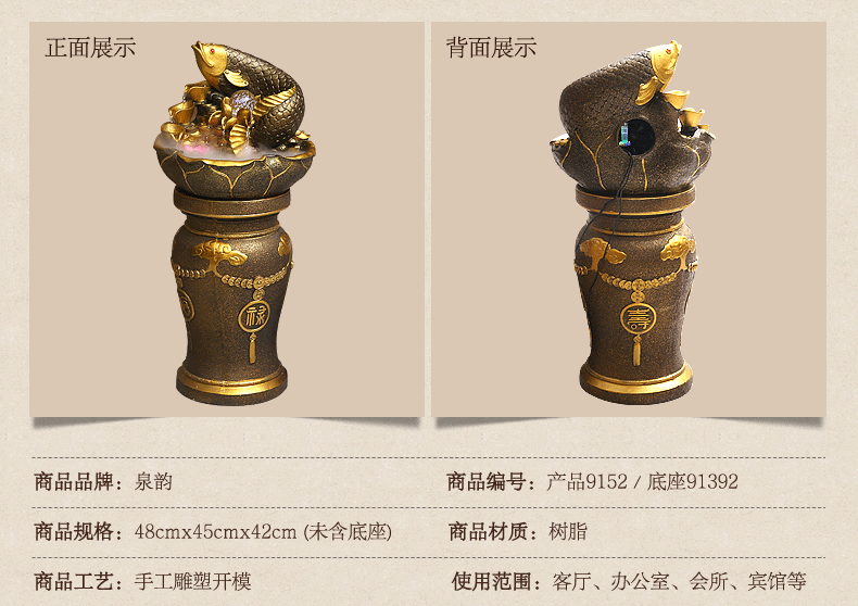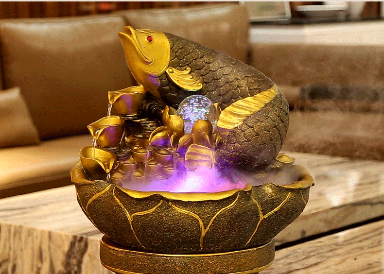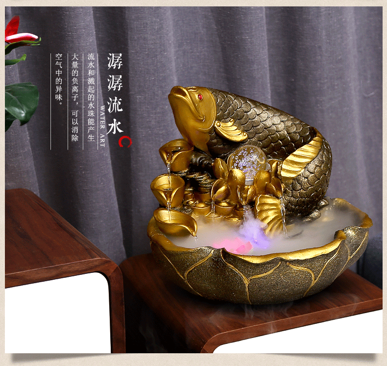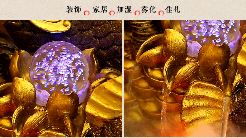 泉韵新品中式流水喷泉风水轮盆景摆件客厅加湿器水景摆设开业礼品