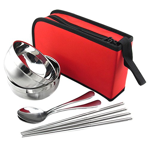 Sealike Portable Travel Environmental Stainless Steel Spoon Chopsticks Bowl Flatware Set with Z...