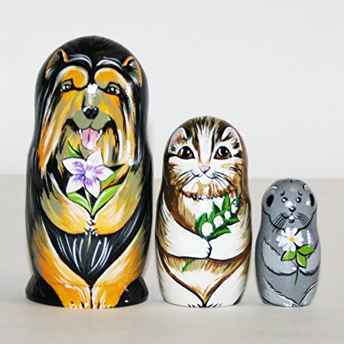 -. Title : Nesting dolls animals inseparable friends - Dog, cat, mouse with flowers. Signed