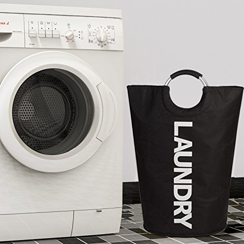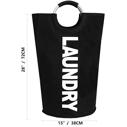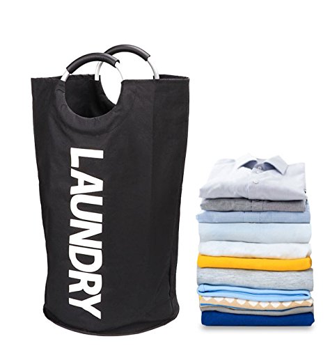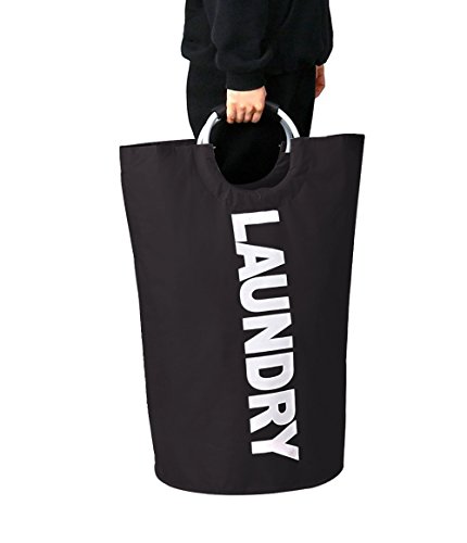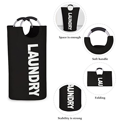 Outdoorfly Laundry Hamper Tote Bags Large Flexible Washing Basket Self Standing Toys Clothes Bag with Padded Handles for Women Men Nursery, Laundry Room College Dormitory,Bathroom (Black)