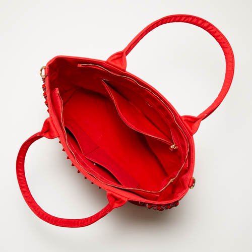 -. Feature : 品番:A-3-308-RDRD-R / カラー:表生地色レッド×スタッズ色レッド×中生地色レッド / サイズ:LL(高さ約36cm×幅約48cm×底約39cm(底マチ約16cm)持ち手約47cm) / 重さ:760g / 付属品:ショルダーストラップ、スタッズ予備