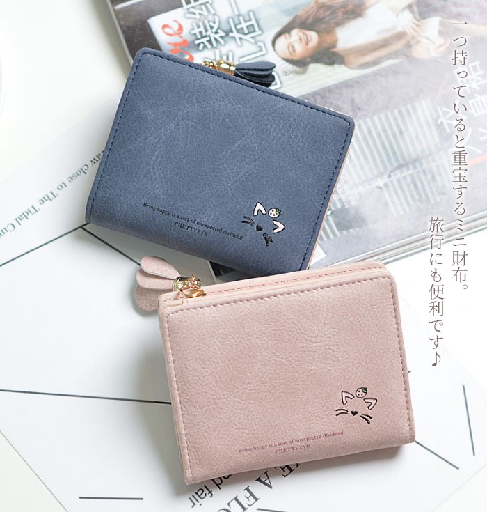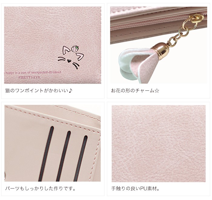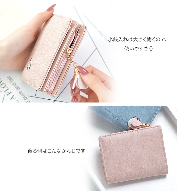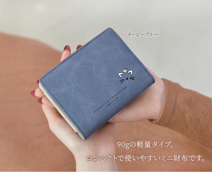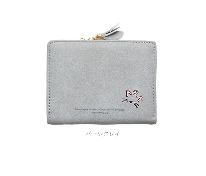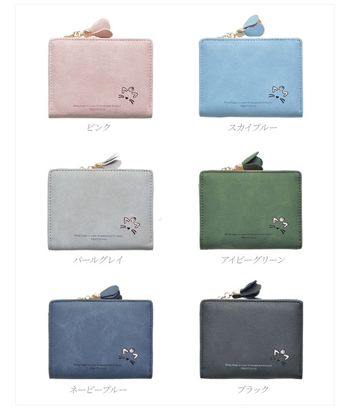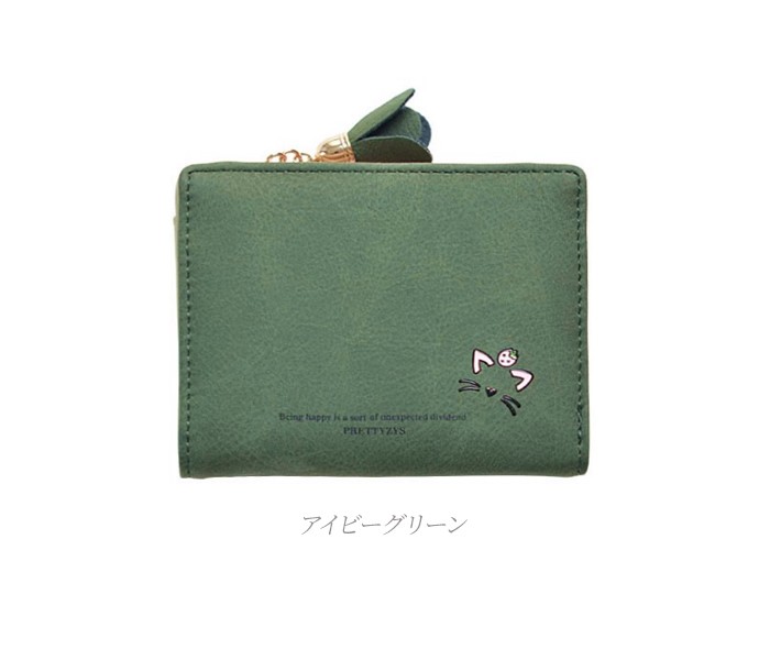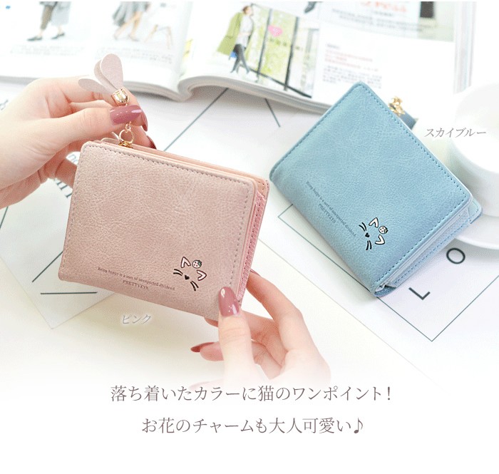 ★コンパクトな軽量ミニ財布(90g)!落ち着いたカラーに猫のワンポイントやお花のチャームが大人可愛い♪