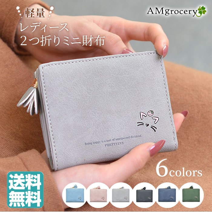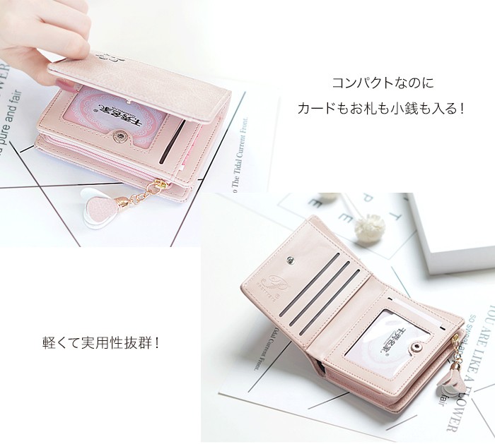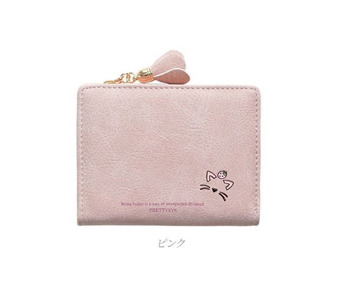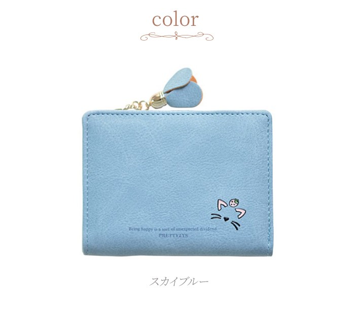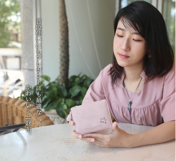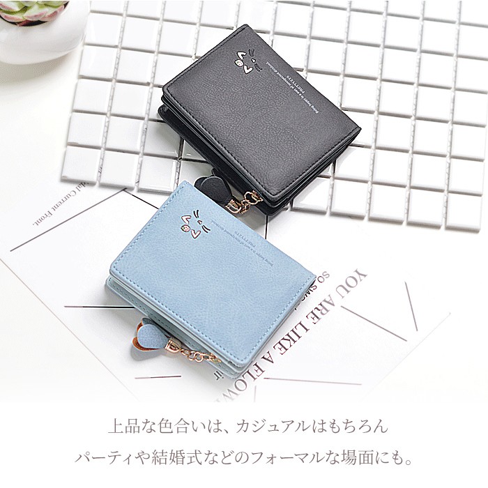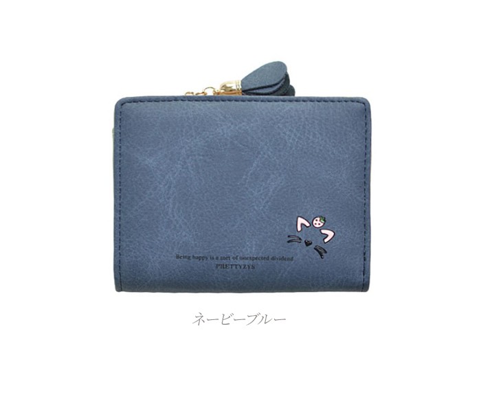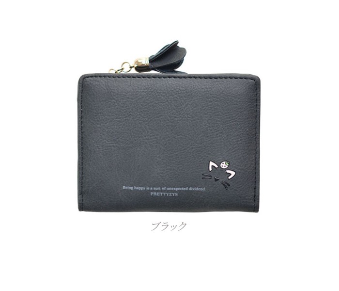 ★コンパクトな軽量ミニ財布(90g)!落ち着いたカラーに猫のワンポイントやお花のチャームが大人可愛い♪