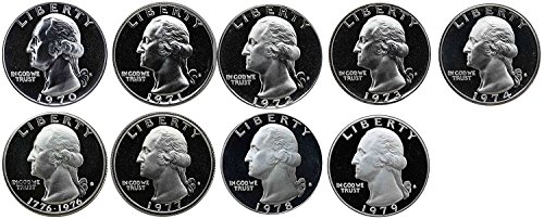 1970 S - 1979 S Washington Quarters Gem Proof Run 9 Coins US Mint Decade Lot Complete 1970's Set Uncirculated