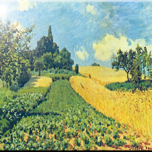 Rikki Knight RK-12intilec-3380 12" X 12" Alfred Sisley Art Grainy Fields on The Hills Design Ceramic Art Tile