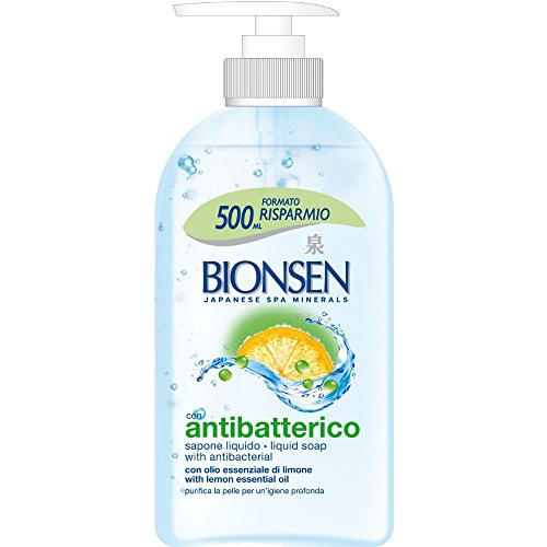 Bionsen: "Antibatterico" (Antibacterical) Liquid Soap with Lemon Essential Oil, Measuring Cap 16.9 Fluid Ounce (500ml) Bottle [ Italian Import ]
