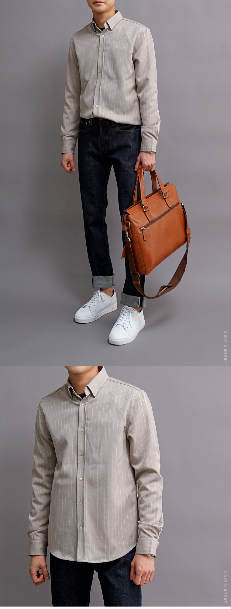 캐주얼하게 치노팬츠나 데님팬츠 등과 매치하면 잘 어울리며, 슬랙스와 코디해도 세련된 코디를 연출할 수 있습니다.