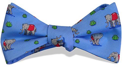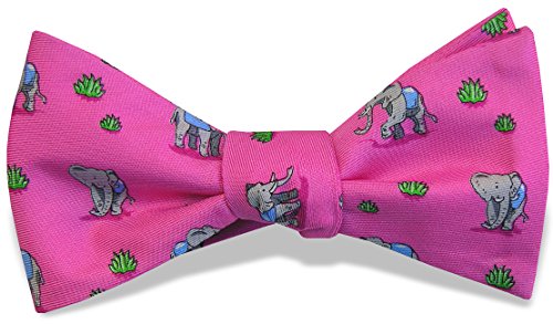 Binding : Apparel Product Description Strollin', stompin' elephants with raised trunks"what's not to love? These guys look as if they'd fit right in at any of the resorts, and Elephant Club Med is a perfect way to show your easygoing nature. Each of our bow ties are outfitted with a fastener next to the hardware slide, allowing them to be tied and unhooked, keeping the bow intact. Our bow ties are adjustable from 15″ to 18". 0