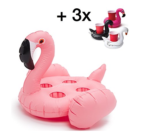 1x aufblasbarer Flamingo pink Getrankehalter Schwimmtier lebensecht fur den Pool, Schwimmbad, See, Strand & Meer uvm. fur grosse Flaschen und Getranke