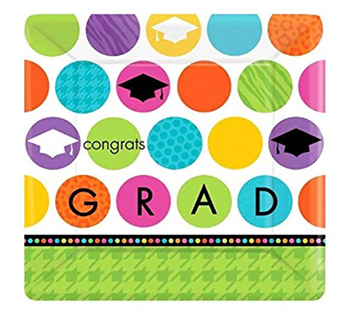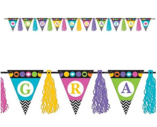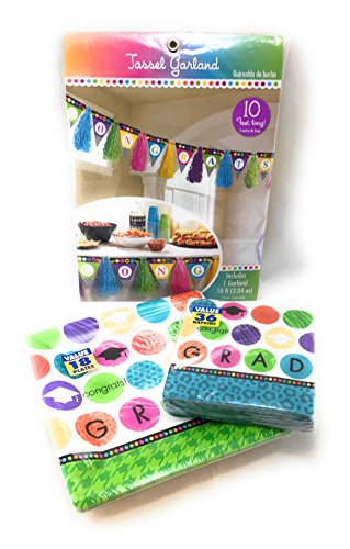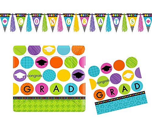 Graduation Party Pack Square dinner plates, napkins & tassel flag pennant 10 ft banner