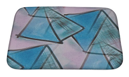 Gear New No Slip Microfiber Memory Foam Blots Blue Triangles Watercolor Painting Bath Rug Mat, 24" X 17"