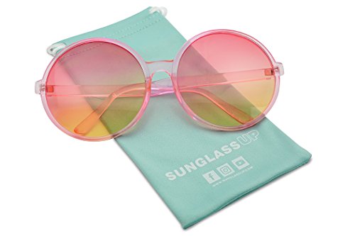 SunglassUP XL Oversized Round Circular Colorful Frame Two Tone Lens Sunglasses