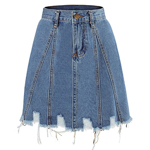 -. Feature : Material: 93% Cotton, 7% Spandex / Summer A Line Denim Skirt / Tassel Hem Design / Please read the size chart carefully. / S=6/US, M=8/US, L=10-12/US, XL=16/US, XXL=18/US