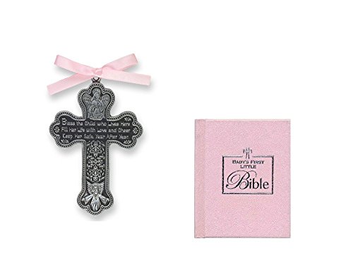 BABY GIRL's Gift Set - First Little Bible & CRIB CROSS - Bless This Child - BAPTISM Christening BOXED PINK Ribbon