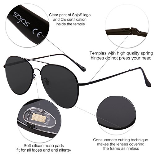 | SojoS Classic Aviator Metal Frame Mirror Lens Sunglasses with Spring Hinges SJ1030 |
