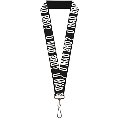 -. Binding : Apparel -. Brand : Buckle Down -. Department : unisex-adult -. Feature : This lanyard is made out of stretchy nylon, and has a stainless steel clip to easily detach your keys / Show off your favorite style / The lanyard is 1.0 inches wide, and a standard length -. Label : Buckle-Down -. Manufacturer : Buckle-Down -. MPN : LY-1.0-W32118 -. NumberOfItems : 1 -. PackageQuantity : 1 -. PartNumber : LY-1.0-W32118 -. ProductGroup : Apparel -. ProductTypeName : ACCESSORY -. Publisher : Buckle-Down -. Studio : Buckle-Down -. Title : Buckle-Down Lanyard - 1.0" - U Mad Bro? Weathered Black/white Accessory