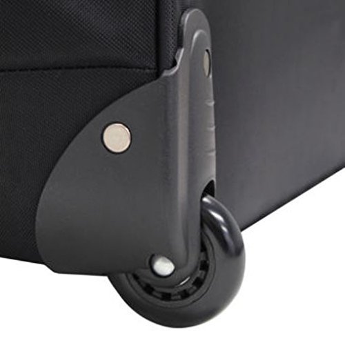-. Feature : Interior Buckle Packing Straps / Durable Nylon material. / Large entry "easy pack" opening, Split-level rolling dufflel bag. Single -stage handle, retractable pull handle, easy-access grab handles. / Heavy-duty stand , corner-mounted wheels. / Split level (Two-levels) top to bottom -full-length bottom compartments packing system. / 5 year manufacturers warranty.
